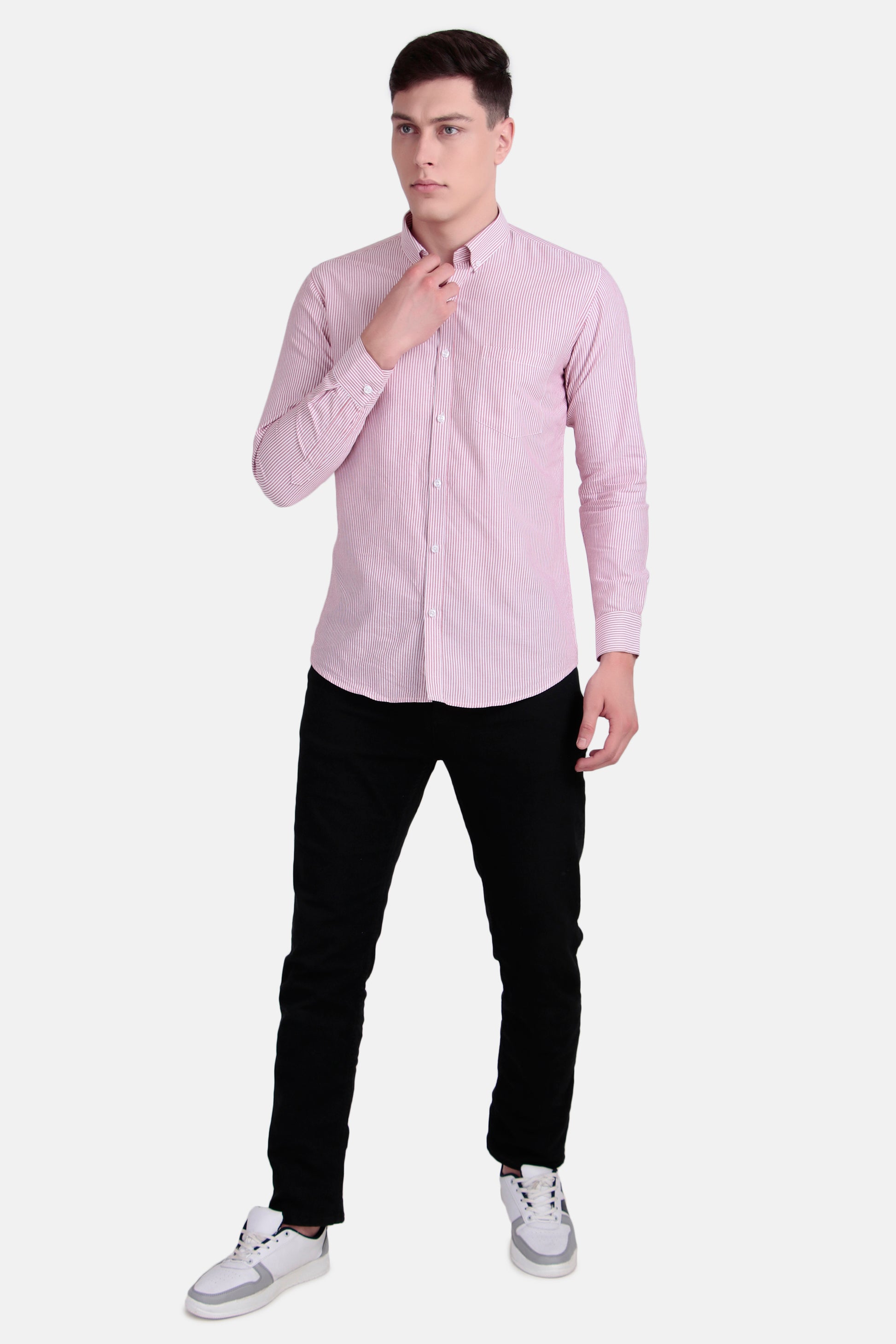 Men’s Slim Fit Striped Casual Shirt – Pink & White